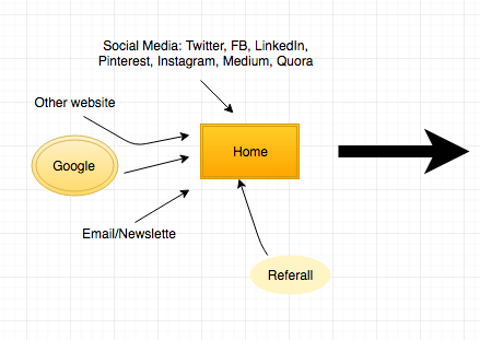 The blue arrows are the pathways we would like our users to take. Thus, at each point in the journey, we need to include a call to the next action we would like the user to take.